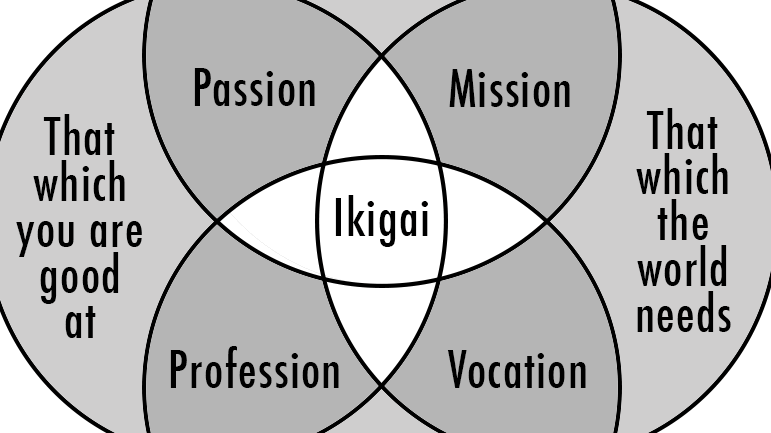 Well let’s break it down: there are four parts to Ikigai, which roughly translates to: